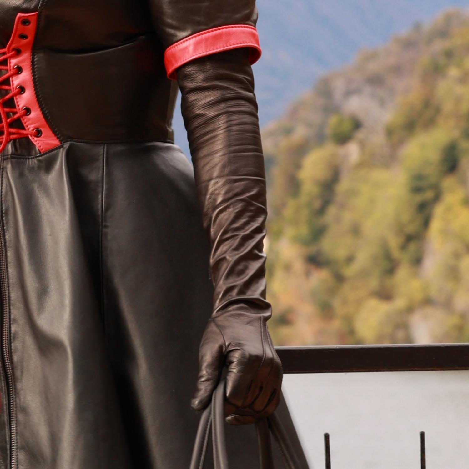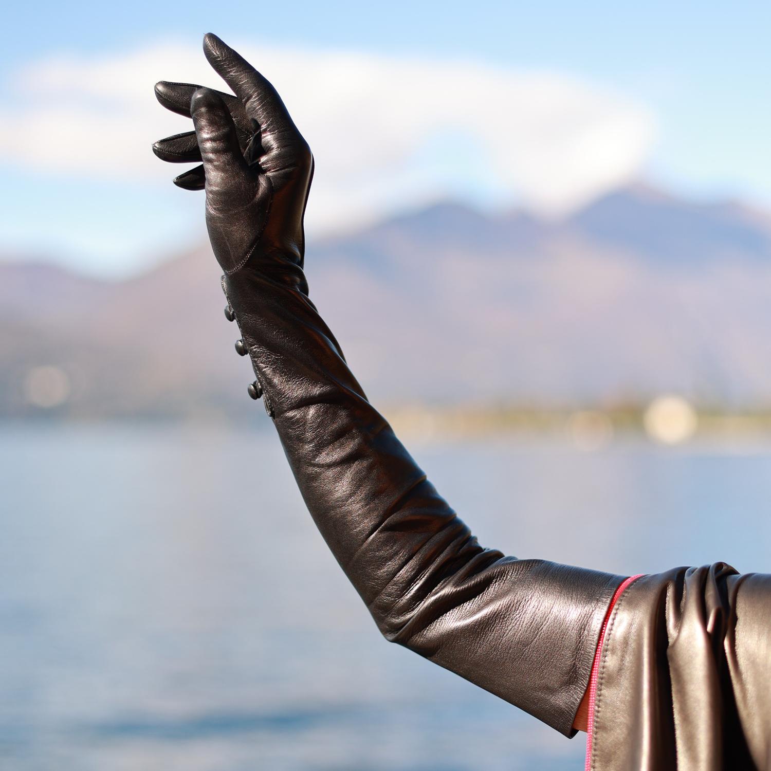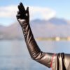 Schwarze oberarmlange Lederhandschuhe für Damen - MICELI - Made in Italy